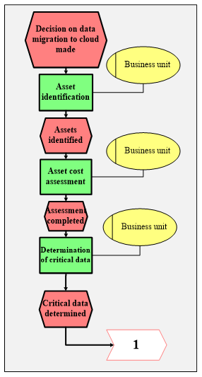 An employee of a business unit identifies information assets involved in the business processes to be automated within the cloud environment.