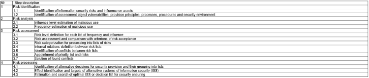 Information risk management is a key process of measuring various information security indicators. On this stage for each information asset, it is necessary to determine the level of its vulnerability, presence of potential threats capable of exploiting these vulnerabilities and to assess the impact of security incidents on the organization’s business processes in its daily operation. To succeed in implementing all actions of the risk analysis process, it is required to introduce control and countermeasure processes into the organization. Figure 3