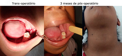 Fig. 3 - Trans-operatório intraoral e pós-operatório intra e extraoral.