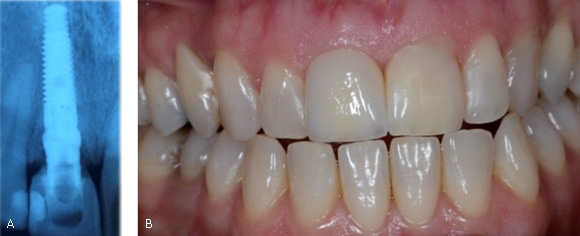 After several stages, the final restoration with a zirconium dioxide abutment and a full ceramic crown was obtained and cemented (Fig.3B).