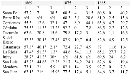 El crecimiento cuantitativo de la recaudación de las provincias también se vio acompañado por un cambio en la composición de los ingresos. En las etapas iniciales de la organización nacional cuando todavía no estaba plenamente consolidado el poder estatal, los auxilios de diversa índole provenientes de la nación constituyeron un componente importante en total de las rentas y en algunos casos, representaron la principal fuente de ingreso. Sin embargo, a medida que se afianzaba la paz interior y las provincias organizaban sus estructuras fiscales, el aporte nacional directo perdió importancia al tiempo que crecían los ingresos propios, en particular las entradas provenientes de impuestos. A mediados de la década de 1880 los recursos tributarios representaban más del 80% del total en la mayoría de las jurisdicciones. No obstante, en el caso de Jujuy y la Rioja el aporte nacional era todavía considerable. Asimismo, Santa Fe y Corrientes tenían una alta proporción de ingresos no tributarios. En el caso de Santa Fe provenían de los dividendos obtenidos por el Banco controlado por el Estado mientras que en Corrientes corresponden sobre todo a la venta de tierras lo que pone en relieve su fuerte dependencia de este recurso