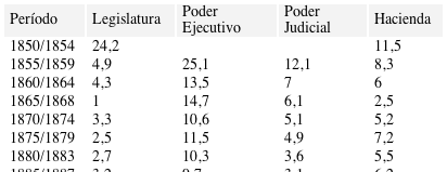 Los egresos en esta área del Estado tradicionalmente constituían uno de los rubros que experimentaban menos fluctuaciones dado que se trataba de reparticiones clave para la actividad gubernativa y su personal gozaba de más estabilidad que el resto de la administración. Pese a que la inversión fue creciendo a partir de 1870 su participación relativa dentro del total disminuyó a medida que se ampliaban otros sectores de la acción estatal.42