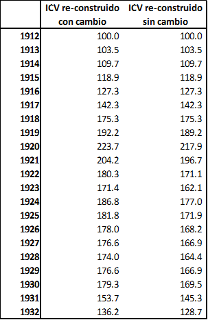 Estimaciones re-construidas del ICV de Bunge, 1912-1932