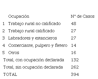 De los 394 individuos que aparecen involucrados en acciones de tráfico ilícito, 386 eran hombres y 8 eran mujeres. Ha quedado registro de la ocupación de las personas únicamente en 132 casos, apenas el 34% del total (Cuadro 2). Aunque no es posible considerar que se trata de una muestra representativa, es sugestiva la frecuencia de ocupaciones rurales.