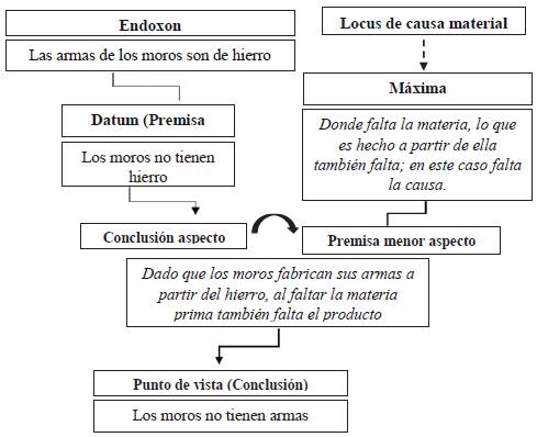 - Máxima: son las diversas conexiones inferenciales que expresan un mismo loci; las cuales buscan hacer verosímil la conexión entre punto de vista y argumento, activando formas lógicas como el modus ponens o el tollens.