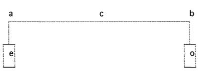 La línea ab se entiende como la construcción de la balanza, cuyo centro por encima del cual se produce el movimiento, es c, que divide precisamente la línea ab en dos; y deje que dos pesos, e and o, sean suspendidos de los puntos a y b. En el caso del peso e tres cosas pueden suceder: que esté en reposo, que se mueva hacia arriba o que se mueva hacia abajo. (De motu, Capítulo 6. Traducción mía)