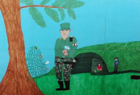 En el proceso de justicia transicional no sólo las víctimas emergieron para el campo del arte sino también lo hicieron los perpetradores y sus crímenes. Estos se hicieron visibles con la Ley de Justicia y Paz mediante las versiones libres y los mecanismos de desmovilización y reinserción a la vida civil. A continuación, se presentará un caso en el que se experimenta con la posibilidad de narrar la guerra a partir de imágenes realizadas por los propios actores del conflicto armado: paramilitares, guerrilleros y soldados del ejército nacional.
