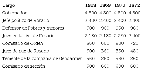 Si observamos el Cuadro 1 es posible notar que el salario de los jueces de paz urbanos fue inferior al establecido para los rurales, cuestión vinculada a la diferencia en sus funciones. Como se ha señalado ya, en los pueblos y colonias de la campaña, los jueces de paz representaban la máxima autoridad local. Ahora bien, si comparamos el sueldo de un juez de paz urbano es claro que se encontraba muy por debajo de lo que ganaba, por ejemplo, un comisario de sección. Esto ameritaría un estudio exhaustivo, pero una primera aproximación al tema señala que los comisarios de sección fueron en general vecinos que no contaban con otras ocupaciones, se trataba de individuos provenientes de sectores muy bajos de la sociedad que no contaban con otros ingresos más que los reportados por el desempeño de su oficio en el departamento de policía.