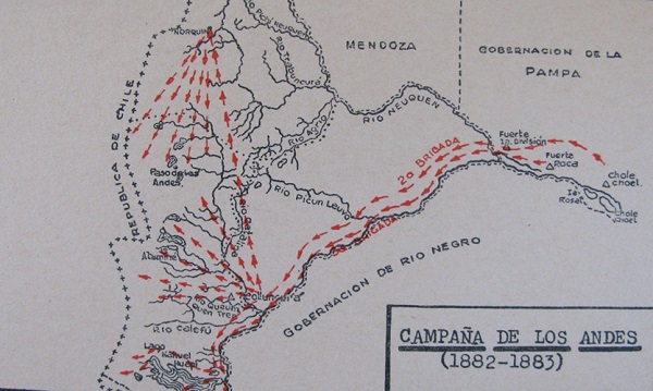 Entre 1882 y 1883, en la región del actual Departamento de Aluminé las tropas del Ejército Argentino, a cargo del General Villegas y comandadas en la zona por el General de Brigada Rufino Ortega y por el Teniente Coronel Enrique Godoy, realizaron la avanzada sobre el llamado triángulo del Neuquén. Ortega partió desde el fuerte de Ñorquín, mientras que Godoy lo hizo desde Choele Choel alcanzando la zona de Aluminé y teniendo como límite el piedemonte andino, futura divisoria con la República de Chile que, de forma concertada, realizaba con su ejército el avance sobre la frontera de la actual región de Araucanía.