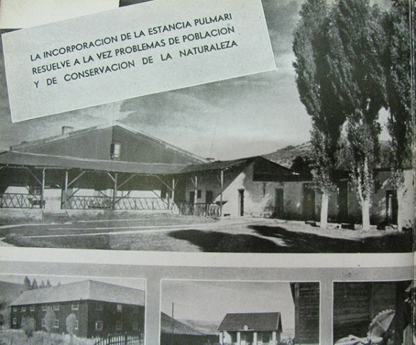 [En el Anexo Pulmarí] se construyeron nuevas casas para empleados y en las existentes se construyeron cercos, tranqueras, alambrados […]. Se construyeron muelles y puentes y…comenzaron los trabajos preparatorios para acoger a los pobladores desalojados de otros parques en defensa de la milenaria riqueza de los bosques de la Patagonia. Se ha instalado en la vieja estancia un encargado y se tomó inventario de lo existente comenzándose las construcciones y los estudios camineros y de otra naturaleza.15 (1948: s/n)