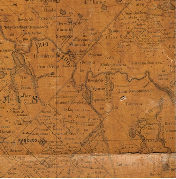 Finalmente, desde una perspectiva arqueológica, el análisis de la cartografía también nos permitió avanzar en la ubicación de posibles sitios. Este es el caso de la identificación del campo donde se encontró el esqueleto humano en 1910, y cuyos registros encontramos desde ca. 1920 bajo el nombre de Sara Delfino de Méndez (Edelberg, ca. 1920). Esta familia es mencionada en las publicaciones de Ameghino (1910), Hrdlička (1912) y Willis (1912). Otro ejemplo es el de la posible ubicación del asentamiento de los llamados “Indios Medina”. En el mapa de 1864, el de Chapeaurouge (1901) y el de Edelberg (ca. 1920), figura el apellido Arista en algunos campos de las cercanías de Ranchos. Este apellido también se menciona en el expediente para referir a un hacendado colindante al asentamiento de los Medina. De ser descendientes de los vecinos originales, esto contribuiría a estimar la ubicación del asentamiento.