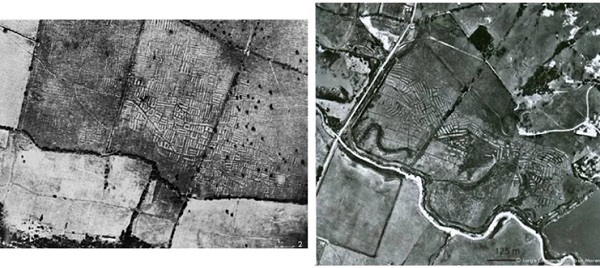 Parte del conocimiento indígena del entorno norandino y del manejo de las dificultades que plantean las condiciones de humedad, de frío y de relieve para la producción agrícola, están plasmadas en algunas modificaciones del paisaje, como son los camellones y la elaboración de terrazas artificiales en las laderas. La existencia de camellones en la Sabana de Bogotá es ampliamente conocida y documentada (Eidt, 1959; Broadbent, 1968; Boada, 2006; López, 2008; Rodríguez, 2011) (Figura 4), mientras que las terrazas de cultivo han sido escasamente mencionadas (Haury, 1953; Haury y Cubillos, 1953; Broadbent, 1964). La construcción de sistemas de terrazas de cultivo prehispánico en otros lugares de los Andes Septentrionales se ha explicado como una minimización de los efectos que tiene el cultivo en laderas, suelos muy frágiles y cargados con mucha humedad casi la mitad del año, lo cual los hace vulnerables a la erosión (Parsons, 1982: 260; Caillavet, 2000: 130). Además las terrazas, al igual que los camellones, retienen humedad, reduciendo los efectos de las heladas (Knapp, 1988, 1991). La función de los camellones con el control del agua es clara, ya que en su mayoría fueron construidos en lugares en donde ocurren las inundaciones del río Bogotá, como es el caso de Funza, Cota, Suba, Engativá y Fontibón.