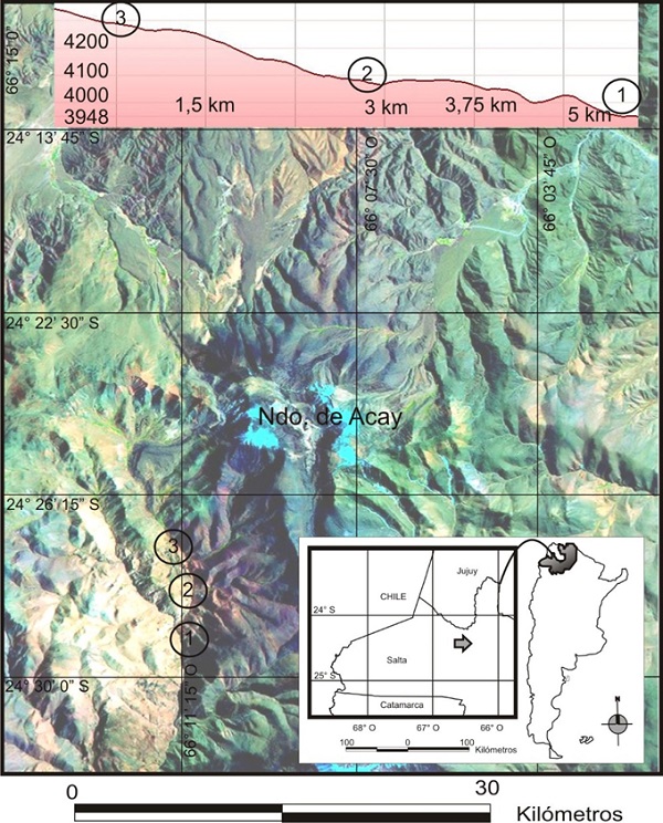 Por encontrarse el Acay dentro de lo que se consideraba el límite norte del valle Calchaquí y el límite sur de los pueblos de Casabindo y Cochinoca, en la cuenca de las Salinas Grandes (Figura 1), su explotación minera surge como prolongación hacia la puna de las actividades económicas de los vecinos de la ciudad de Jujuy y sus intentos de explotar, desde fines del siglo XVI, los numerosos minerales metalíferos de los actuales departamentos jujeños de Yavi, Santa Catalina, Cochinoca y gran parte del de Rinconada.