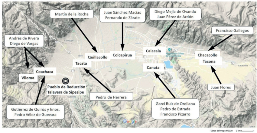 Constituido como cuerpo político, laboral y tributario durante la colonia temprana, el repartimiento de indios de Sipesipe fue sucesivamente otorgado en encomienda a diferentes conquistadores.4 Su primer encomendero fue Francisco Negral, quien recibió la merced en 1534 de manos de Francisco Pizarro. Tras la muerte de Negral, en la batalla Huarina de 1547, la encomienda fue reasignada por Pedro de la Gasca a Hernando de Silva, el cual la disfrutó hasta su retorno a la península ibérica. Posteriormente, la encomienda pasó a su hijo y, luego de su fallecimiento, recayó en la órbita de la Corona Real. De esta manera, al momento de iniciarse la visita general del virrey Toledo, el repartimiento de indios se encontraba en cabeza de su Majestad.