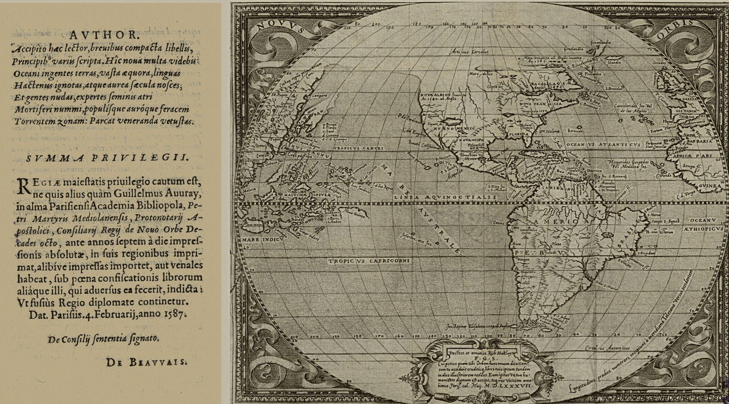 "Novus Orbis", en De Orbe Novo. Petri Martyris Anglerii Mediolanensis, protonotarij, & Caroli Quinti senatoris decades octo…. Labore et industria Richard Haklvyti, Paris : Guillaume Auvray, 1587.