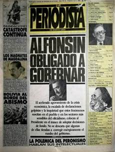 Esta percepción, más tarde ratificada por la literatura académica como “anacronismo”, tuvo sustento en algunas aproximaciones sobre el estado de la estructura social argentina que arrojaban la subsistencia del desempleo, la pérdida del poder adquisitivo, la desindustrialización parcial y la creciente desintegración social –calificada por Zlotogwiazda con referencia al concepto sociológico de “marginalidad”–. Por otra parte, y en un extremo, la caracterización de este escenario inestable dio justificación adicional a las denuncias del medio sobre el golpismo y el rol de la dictadura en la erosión de los sectores obreros y empresariales “nacionales” y la financierización económica, mientras se aprestaba el juicio a la Juntas. De este modo los conspiradores castrenses en su discurso tuvieron correlato, y ciertos nexos demostrados por la práctica de investigación periodística, en otro adversario democrático, el establishment financiero-bancario promotor –de acuerdo con otro neologismo novedoso prodigado por la revista– del “golpismo de mercado”.[46] En tanto que la comparación con el régimen de Weimar dejaba sentada en términos políticos que el deterioro social favorecía el descrédito democrático y la disponibilidad popular frente a la eventual restauración autoritaria. De allí la advertencia sobre los riesgos explosivos de la situación económica y el llamado al gobierno para que no cediera ante el poder económico.
