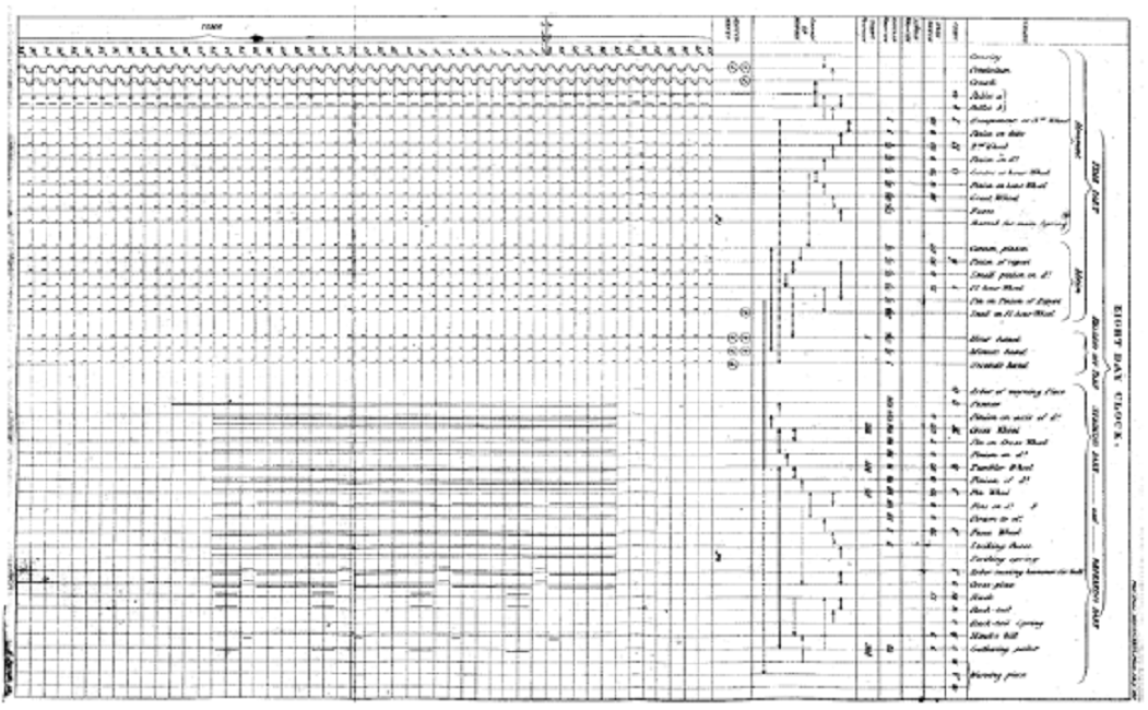 A mediados del siglo XIX, a pesar de que no era común aún que los ingenieros estuvieran formados en matemáticas, comenzaron a destacarse los que sí lo eran32. Babbage, como vimos, es un caso emblemático. Robert Willis es otro. Ambos fueron contemporáneos, alumnos y profesores en Cambridge y miembros de la Royal Society de Londres. Además de estas coincidencias biográficas, sus investigaciones acerca de la máquina abordaron muchas problemáticas comunes. Es su obra más famosa, Principles of Mechanism, Willis dedicó un capítulo entero al estudio de la notación mecánica de Babbage33. Allí suscribió al intento de generar un lenguaje formal con base en líneas de tiempo que registraran el movimiento de cada pieza en la máquina, similar al de las partituras musicales.34