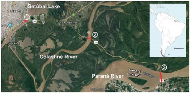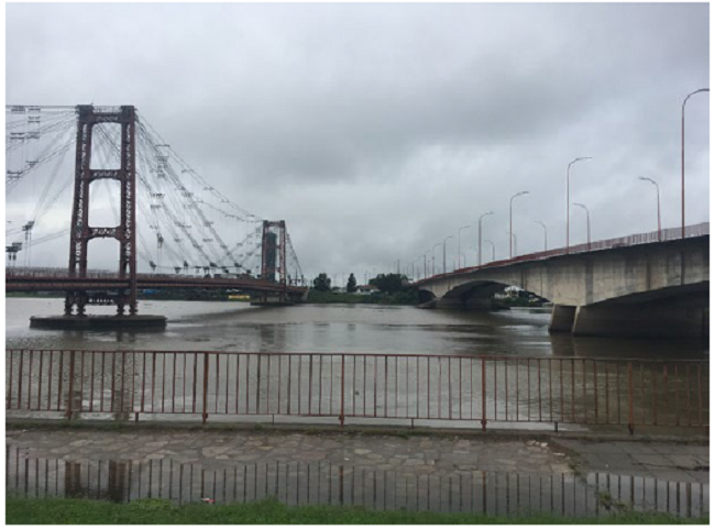 The three infrastructures presented in this paper were carried out following the guidelines of the developmental model, and built with technologies based on the use of concrete. They are located in the alluvial plain that divides a metropolitan binuclear area and that is modified by the dynamics of the water cycle. The interconnection of this area in terms of activities and exchanges originates a high degree of mobility through the corridor of National Route 168. What was a journey of several stops and long queues during the first half of the twentieth century, today is a 30-minute experience. Before the existence of large infrastructures on the corridor, crossing from Santa Fe to Paraná and vice versa meant, in its different stages, combining different means of transport to cover a distance of 30 km. It involved boarding a train, driving to a berth, travelling by boat for a while and then by raft, among other variants.