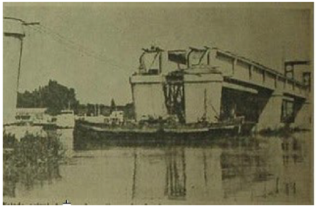 The work included viaducts at both ends, accesses and asphalt paving. Later on, defences were added on Santa Fe side. The bridge has a span of 300m and it is divided into three sections, that is to say, that it has two supports in the river. It also bears sidewalks and two roads, each 7.5m wide, separated by a stone division. The structure is made up of two main beams of reinforced concrete, of variable height, prestressed box type, built in successive sections by voussoirs measuring 3.11m. The bases are supported by 22 piles sunk between 15m and 25m below the scour level and with a diameter of 1.5m: so far, the largest in the country. As in the case of the bridge over the Colastiné, the Freyssinet system was also used here, but with the exceptional variant of using 24 0 7 cables that bifurcate before reaching the anchor, allowing a better use of the concrete, which was heated with steam to absorb the climatic variations in the hardening stages. The proximity of the viaducts to the urban area was taken into account, therefore, the one on the Santa Fe side shows curved branches that cross landscaping areas. Both ends are supported by Franki piles of variable length and 70 cm diameters. A system called "lost formwork system" was used for building piles next to the coast. The whole work played a fundamental role in the unusual flood of the Paraná River in 1982 since one of the consequences of this phenomenon was the destruction of one of the bases of the "Colgante" Bridge (made in a semi-rigid iron structure) rendering it useless and leaving the Oroño Bridge as the exclusive terrestrial communication (figures 7 and 8).