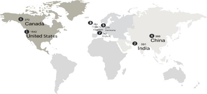 Countries Share. As shown in figure 2, the greatest influence is the United States with 25,6%, followed by India with 9,2%, the United Kingdom with 7,8% and China with 5,7%.