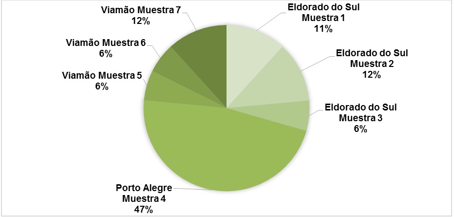 Figura 1. Porcentaje de aislamientos obtenidos de muestras de suelo por localidades del Estado de Rio Grande do Sul, Brasil.