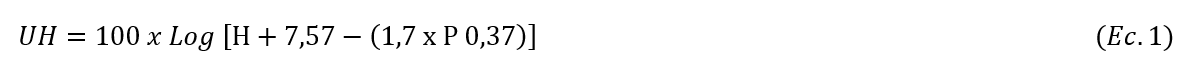 H = altura del albumen, P = peso del huevo
