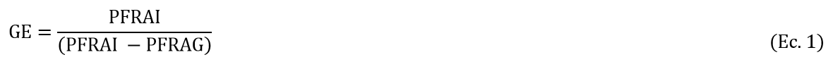 GE es la gravedad específica, PFRAI es el peso fresco de raíces en el aire y PFRAG es el peso fresco de raíces en el agua.