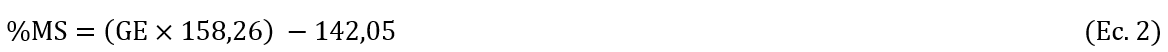 Donde MS es la materia seca y GE es la gravedad específica.