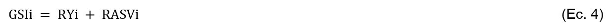 El índice de selección de genotipos (GSI) se calculó para cada genotipo con la ecuación 4: