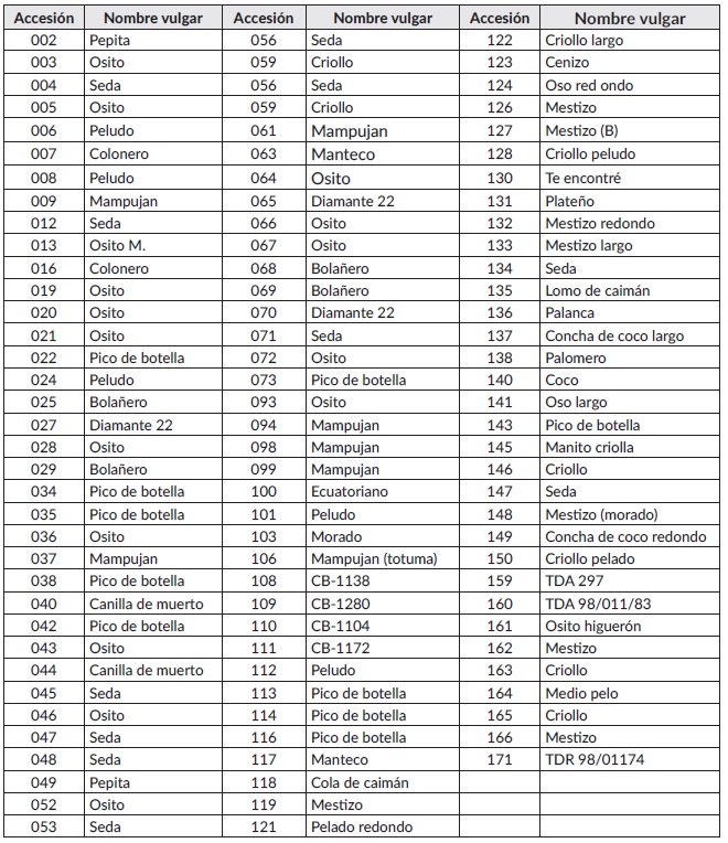 Cuadro 1. Accesiones establecidas de Dioscorea alata en el banco de germoplasma de la Universidad de Córdoba durante el año 2015.