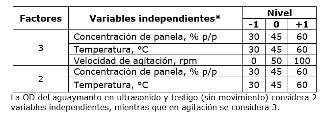 La OD del aguaymanto se desarrolló con un diseño factorial 2. + pc de acuerdo con el cuadro 1. En la que k hace referencia a la cantidad de variables independientes y pc a los puntos centrales del diseño.