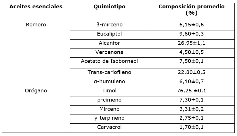 Cuadro 2. Composición de los aceites esenciales estudiados.