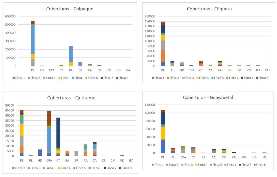 Figura 5. Coberturas de uso de suelo identificadas en las fincas de cada municipio
