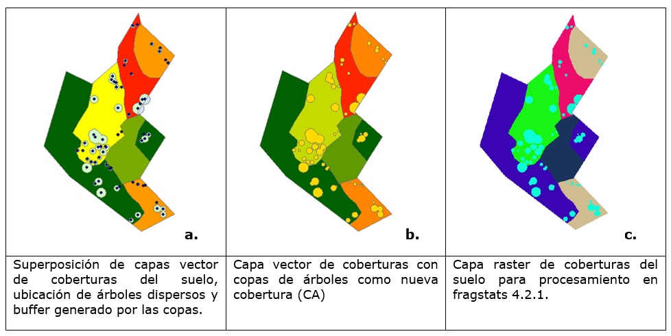 En la Figura 1 se presenta un ejemplo del proceso metodológico para la obtención de la capa raster que fue procesada mediante el software fragstats 4.2.1.