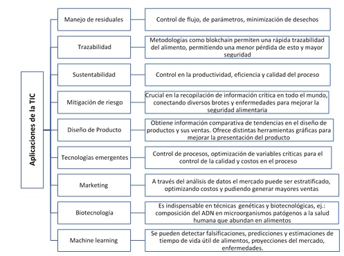 Figura 1. Aplicaciones de las TIC en la industria de alimentos.