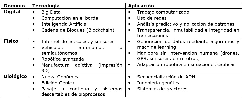 Cuadro 1. Principales tecnologías según el dominio de aplicación.
