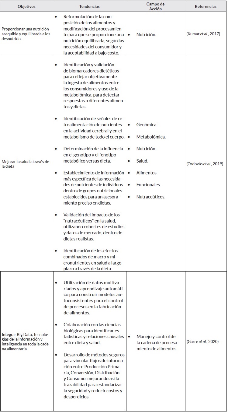 Con base en base a la agenda globalista para el 2030, las tendencias de la industria de alimentos se dirigen a los siete objetivos principales que se describen en el cuadro 2.