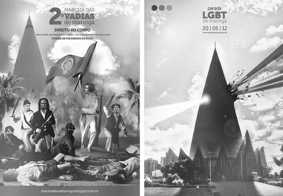 Virar a Catedral de “ponta cabeça” e usá-la como genitália feminina representa reposicionar as mulheres na cidade, usando os símbolos fálicos ao modo da ironia e do deboche, pois a interferência religiosa na vida sexual e reprodutiva das mulheres vem operando através dos poderes do Estado e assim, legitimando um controle baseado na moral cristã na administração dos corpos. A crítica a essa forma de controle e vigilância sobre os corpos das mulheres é parte das agendas feministas. A catedral, símbolo religioso de Maringá e popularmente conhecida como símbolo fálico, é bastante utilizada pela artista, que em 2012 e 2013 criou o Cartaz da Marcha das Vadias e da Parada LGBT tomando-a, respectivamente, como tema ou pano de fundo.
