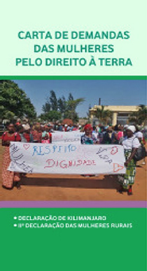 Nós, mulheres rurais de África, reunidas em Arusha de 14 a 16 de outubro de 2016, apresentamos esta Carta de exigências das Mulheres Africanas sobre os direitos fundiários desenvolvida através de um processo consultivo envolvendo representantes das Assembleias de Mulheres Rurais e dos Fóruns de Mulheres Agricultoras de mais de 22 países africanos. Todas as exigências apresentadas a seguir foram aprovadas por todos os membros da Assembleia.