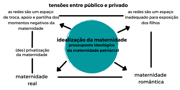 Pode-se perceber um deslocamento das práticas de maternagem do espaço privado para o espaço público das redes sociais digitais; o que vai ao encontro do pressuposto da privatização (O’REILLY, 2016). Daí decorrem os sentidos de “vergonha” e “medo de ser julgada” mencionados pelas mães que, agora, passam a produzir significados que desromantizam a maternidade, promovendo rupturas com os padrões normativos vigentes.