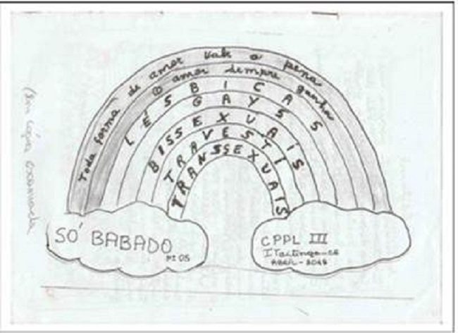 Os relatos sobre as violências causadas em decorrência de seus corpos, gêneros e sexualidade e os apelos pelo fim do preconceito às pessoas LGBTI+ atravessam todas as edições do fanzine Só Babado. Bicuda, “moradora de rua” (é assim como ela se identifica), relata que recebeu alvará de soltura, mas como não tem endereço fixo, nem família que a acolha, permanece presa. Ela fala da sua história de vida: “Quando cheguei na cadeia fui estuprada na temida ‘tranca’.14 Me torturaram e me deixaram sem comida. No outro dia, acordei com meu corpo pegando fogo” (SÓ BABADO, 2015b, p. 05). Paulinha Mel, mulher trans, diz que “ser transexual é renunciar a uma sociedade totalmente preconceituosa e conservadora, renunciar é preciso pra ser feliz” (SÓ BABADO, 2015d, p. 11). Em um trecho sem assinatura, alguém clama: “Por um mundo onde sejamos socialmente iguais, humanamente diferentes e totalmente livres” (SÓ BABADO, 2015b, p. 12).