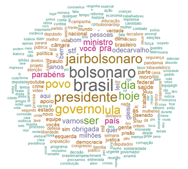 Quando repetimos a análise apenas com o “subcorpus”, chama a atenção que ainda assim aparecem como termos predominantes, para todas as deputadas, palavras como “Bolsonaro”, “Lula”, “ideologia” e “presidente” (ver Apêndice A). Ou seja, mesmo posts que, em tese, tratam de questões relacionadas às mulheres acabaram identificados com a polarização ideológica entre governo e oposição.