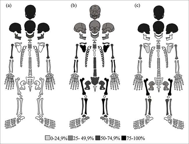 Keywords: Human remains, Taphonomy, Quantification, Sex-age analysis, Cranial modification.