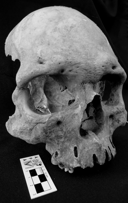 El sitio arqueológico denominado Pavenhan, se encuentra ubicado en la estancia homónima, y el rasgo que lo caracteriza es la alta densidad de restos óseos humanos con escaso material arqueológico acompañante. Los elementos óseos presentaban una disposición particular, por un lado cráneos agrupados en un extremo de la concentración y, por otro, las extremidades inferiores, insertados de manera vertical en forma de empalizada (Ruggeroni comunicación personal, 2010). Cabe destacar que los restos se hallaron a poca profundidad, casi superficialmente, motivo por el cual la maquinaria agrícola provocó fracturas en la mayoría de los huesos al descubrir el sitio (Fig. 2).