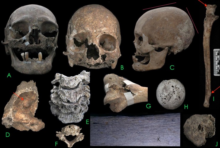 A continuación se presenta el análisis de los cuatro casos del grupo de estudio y la discusión del análisis bioarqueológico, siguiendo la propuesta del modelo osteobiográfico (Saul, 1972; Stodder y Palkovich, 2012) descrita en la metodología. En la Fig. 2 se muestran algunas de las características patológicas y lesiones descritas en este apartado.
