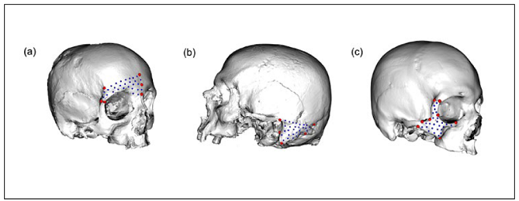 Regarding the limitations of our study, although we used del Bove's (2020) work as a reference to determine the number of surface points required to capture frontal bone morphology, at present there are no studies that provide guidance on the optimal number of surface points required for capturing the morphology of mastoid process and zygomatic bone. While it is currently not possible to determine a priori how many surface points are necessary to fully capture the shape variation, we chose a number of points that allowed us to capture the complexity and size of each trait, without over-representing any particular region. In this sense, over-representing a region could result in some surface points falling outside the area of interest, and could also increase the dimensionality of the dataset, potentially reducing the power of subsequent analyses as pointed out in previous studies (Bardua et al., 2019; Watanabe, 2018). Therefore, we suggest that our study should be consider as a starting point for further studies.