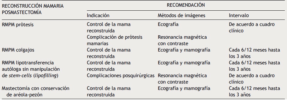 En las mujeres con antecedente de radioterapia en el tórax recibida entre los 10 y 30 años, el cribado anual con resonancia magnética con contraste endovenoso comienza 8 años después de finalizado el tratamiento radiante, no recomendándose la mamografía antes de los 25 años.