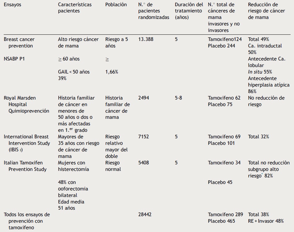 La quimioprevención solo está indicada en mujeres con alto riesgo de cáncer de mama en las que no se haya optado por la cirugía. Las recomendaciones son: