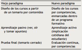 Estos posibles beneficios, sin embargo, eran superados ampliamente por las debilidades, en cuanto a que el modelo tradicional implicaba escaso contacto con los estudiantes y poca o nula interacción o conocimiento del grado de aprendizaje de los alumnos. Esto se debía a que se enseñaban temas y no se aprendían competencias, además de que se evaluaba de un modo convencional.