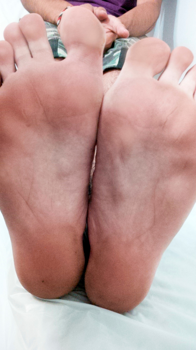 Fotografía de las plantas de los pies del paciente donde se constata visiblemente la presencia de nodulaciones en la región centro-medial de ambas plantas.